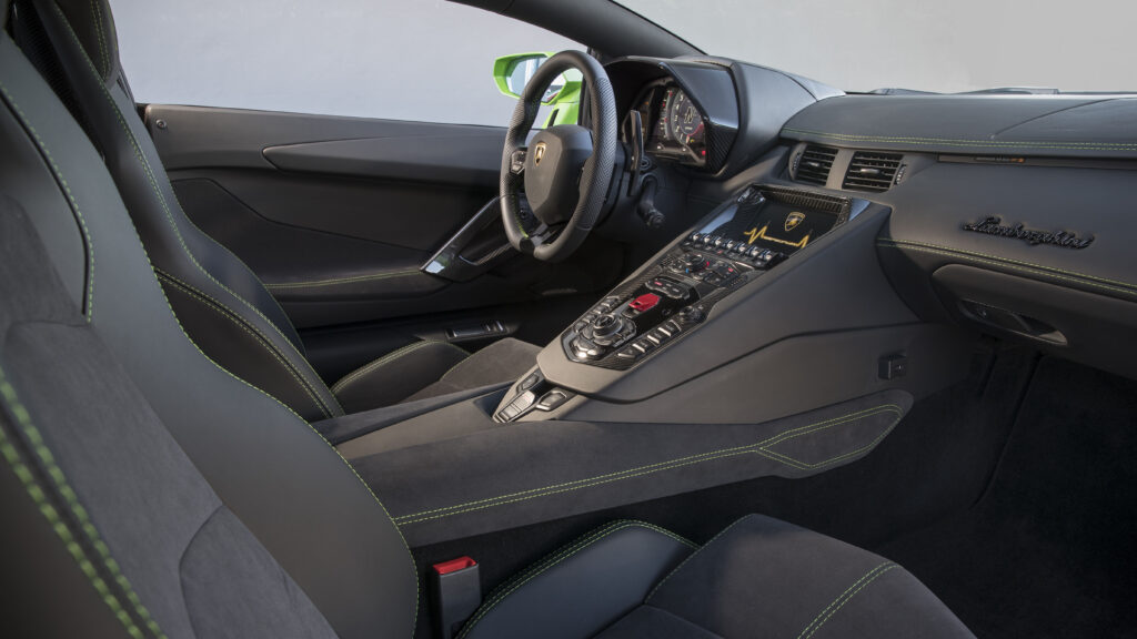 The design language has evolved from sharp edges to a more muscular, aerospace-inspired aesthetic. The “monofuselage” chassis is made entirely from multi-technology carbon fiber, making it lighter and torsionally stiffer than the Aventador’s framework.
